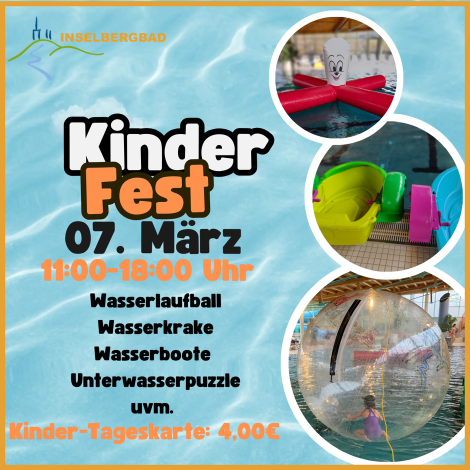 Am 7. März findet im Inselbergbad Brotterode von 11:00 bis 18:00 Uhr wieder ein großes Kinderfest statt.