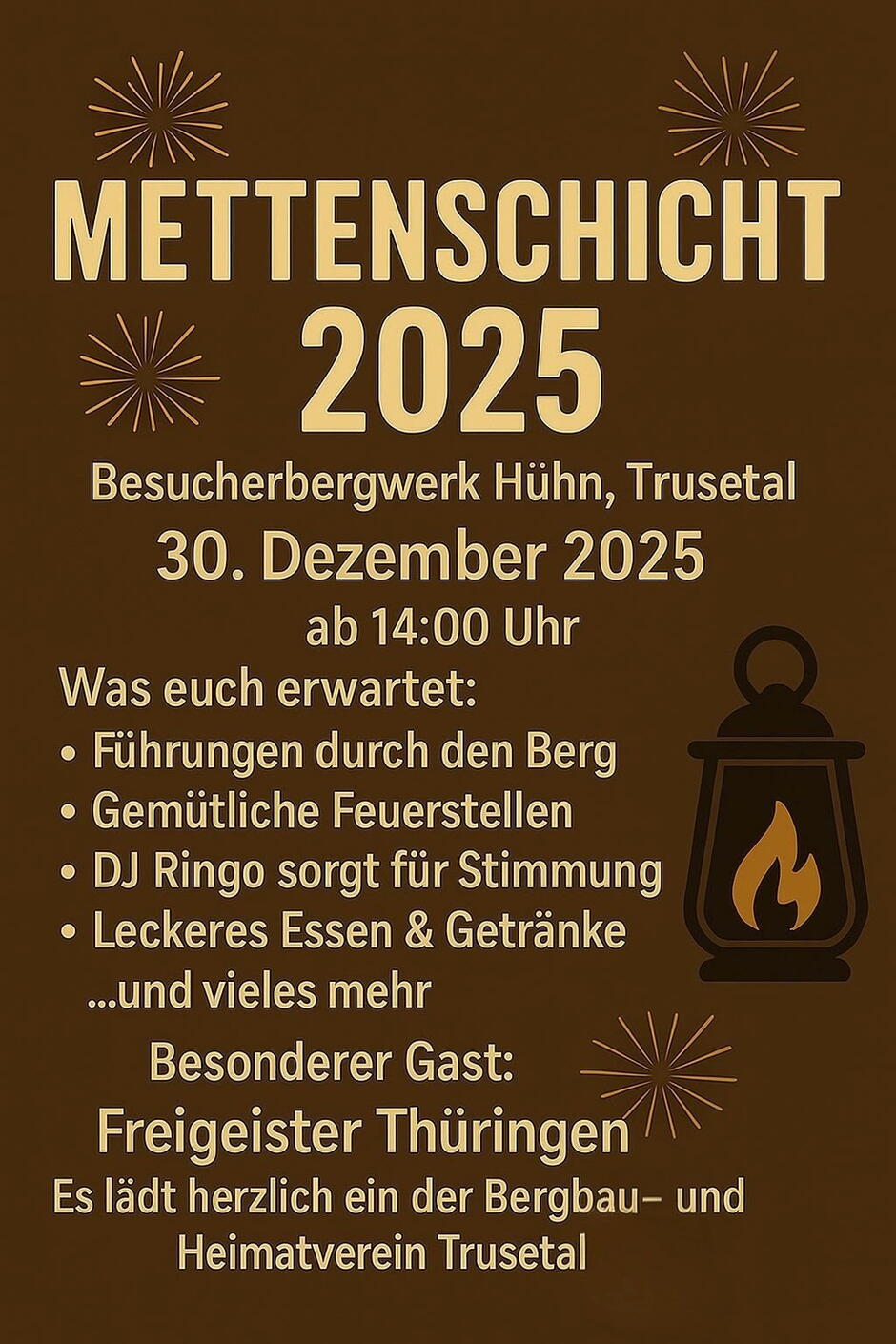 Mettenschicht im Besucherbergwerk „Hühn“ in Trusetal mit dem Bergbau-und Heimatverein Trusetal